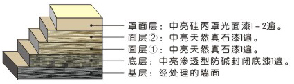 ★ 采用純天然彩色石英石,涂膜堅(jiān)硬。 ★ 運(yùn)用多種彩色砂石、可任意調(diào)配不同花樣和外觀的仿大理石效果。 ★ 采用高防水硅丙樹脂粘結(jié)劑,能耐老化二十年以上。 使用范圍:適用與各種建筑墻面,尤其適用于結(jié)構(gòu)復(fù)雜之墻面及需要體重莊重、豪華、大方、個(gè)性化仿石效果的外墻面。 產(chǎn)品特征:水性、厚漿砂壁狀、多彩(搭配)、單組份。 配套組合: