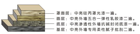 彈性核殼乳膠漆粒子成膜剖面示意圖:中亮外墻五合一彈性乳膠漆采用先進的革命性的核殼技術(shù)及配方使彈性涂料的彈性和硬度回粘這一矛盾的難題得到了完美的解決。 經(jīng)典推薦樣板:
